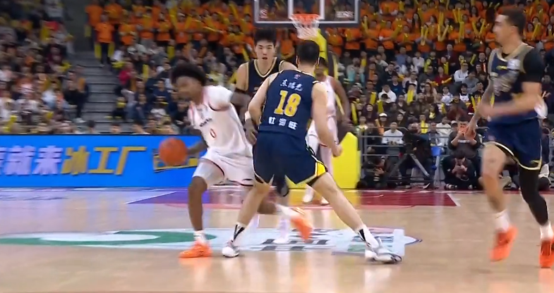 1分钟后陈家政继续紧逼贴身防守古德温,古德温愤怒地推开了陈家政的手臂,之后在摆脱过程中古德温右手发力将陈家政推倒在地,裁判吹了古德温犯规。